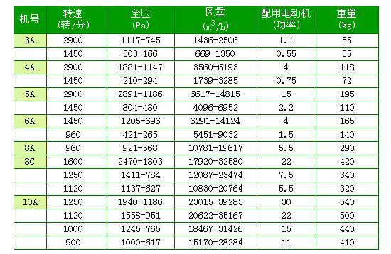 SY-731型PP离心风机技术性能表:
