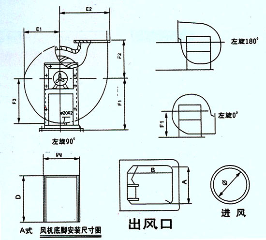 SY-731-Ⅱ型PP离心风机为全塑无钢支座,大机型为8A号,内机出口360°任意转向,进出风口按照SY-731-Ⅰ型表,安装尺寸由我厂另提供。