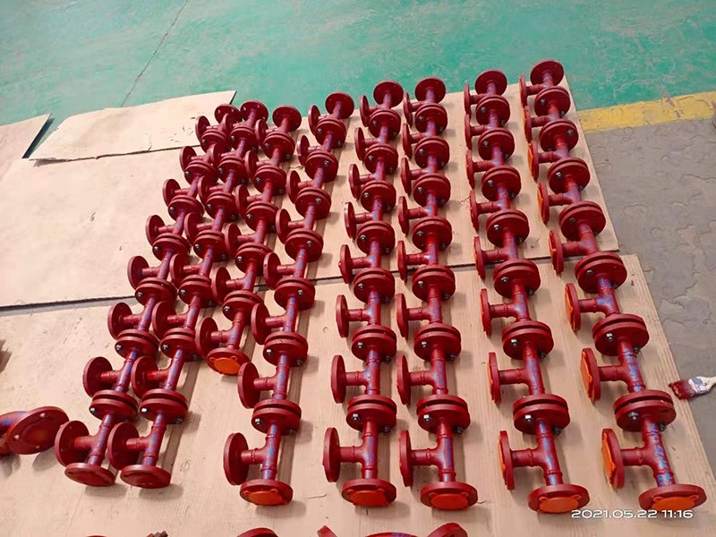 (9)衬塑三通调温阀可任意位置安装,但应急手动装置面应安装在便于操作的位置。
